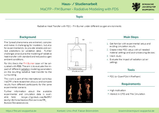 Evaluation of radiation modeling parameters on radiative heat transfer with FDS (Studienarbeit / Master-Thesis)